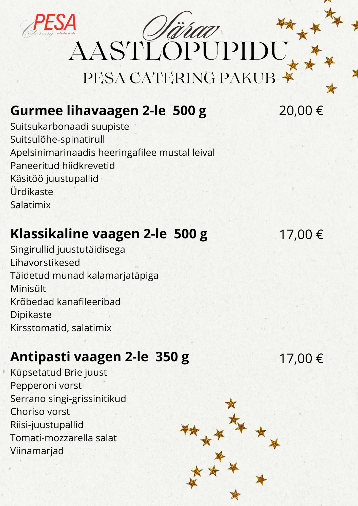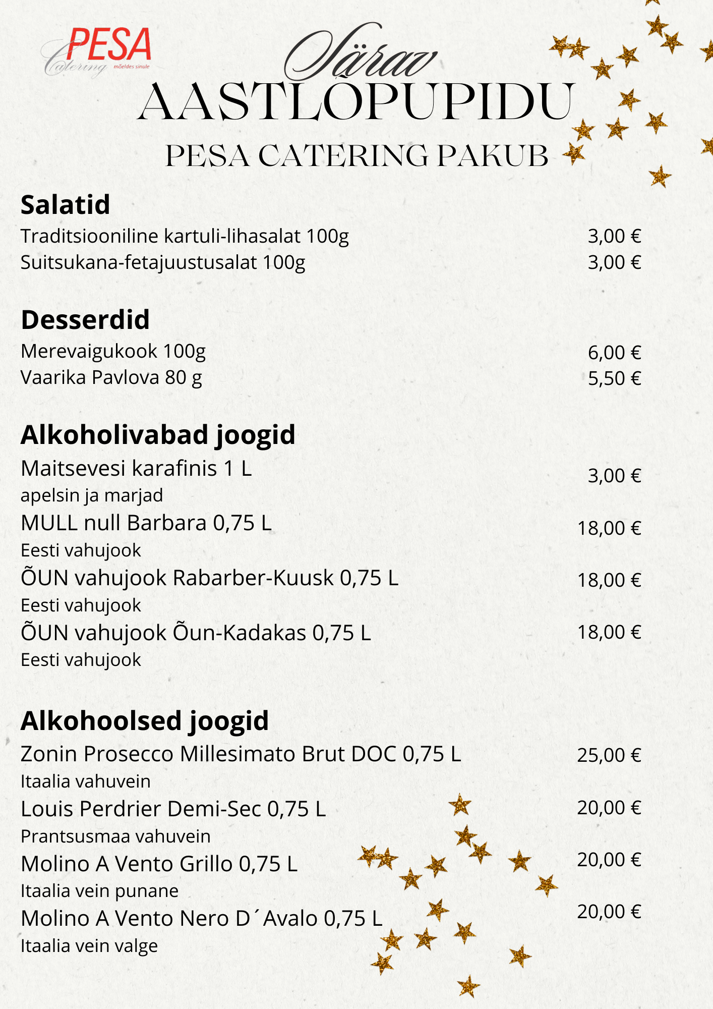 Ettetellimine kuni 20.12.2025 tel: +372 5622 2881 e-mail: broneering@pesahotell.ee