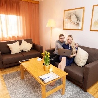 - Magamisruumis kaheinimesevoodi 160x200 ja elutoas kaks lahtikäivat diivanit 130x190