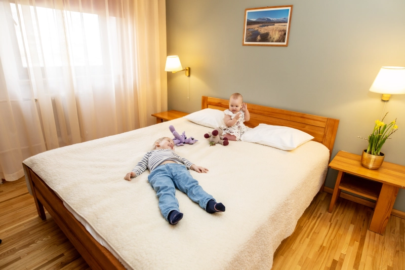 - Magamisruumis kaheinimesevoodi 160x200 ja elutoas kaks lahtikäivat diivanit 130x190